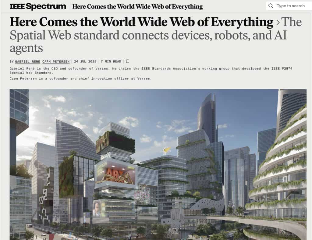 Resources Here Comes the World Wide Web of Everything The Spatial Web standard connects devices, robots, and AI agents Author: Gabriel Rene & Capm Petersen…